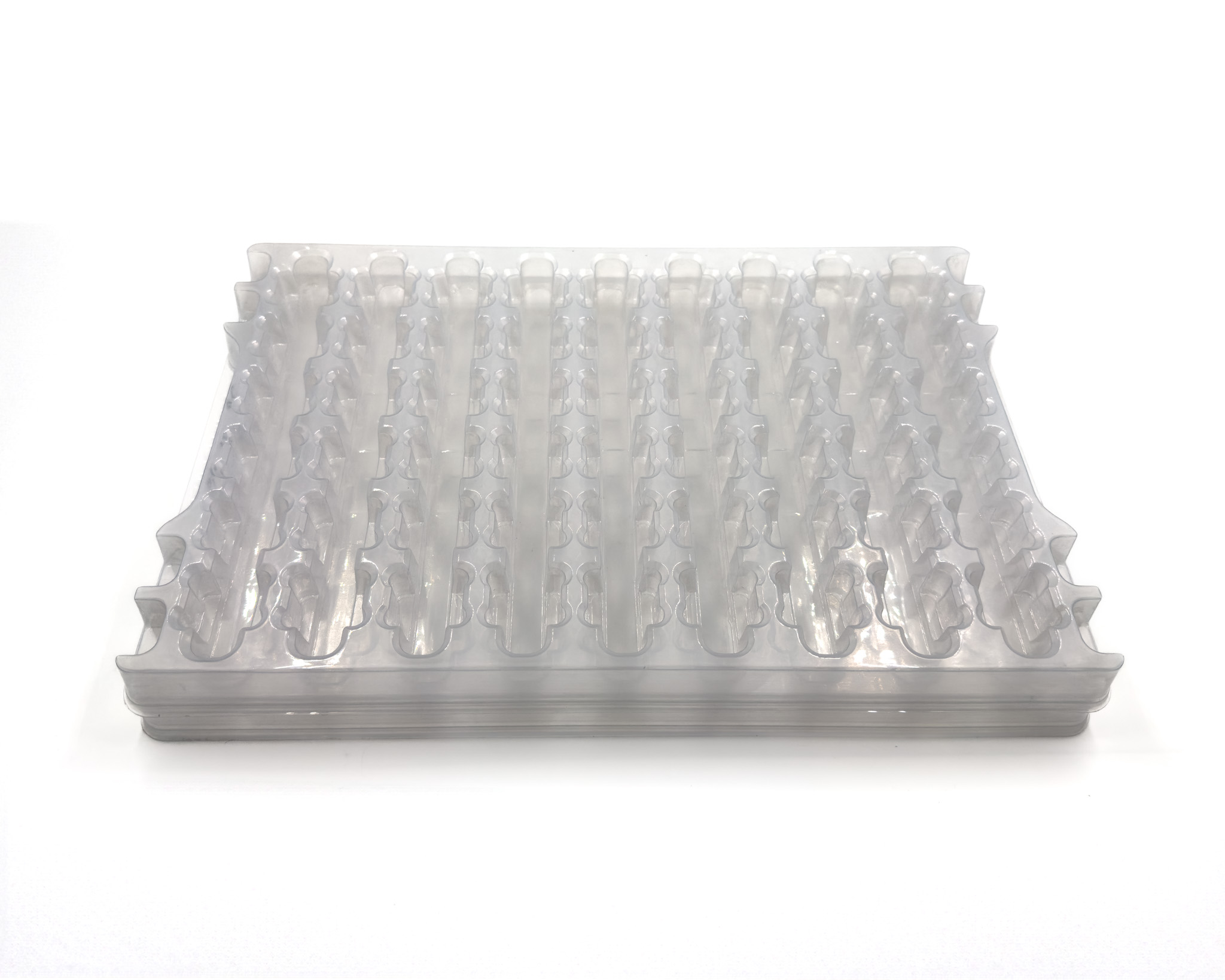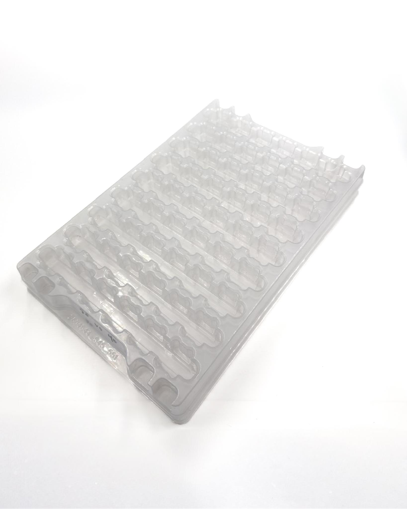 Esta charola blister está elaborada con PET reciclado, contribuyendo al cuidado del medio ambiente sin sacrificar calidad ni resistencia. Su diseño apilable facilita el almacenamiento y transporte eficiente, ofreciendo una excelente protección para productos delicados. Es ideal para el empaque de diversos artículos, garantizando seguridad y sostenibilidad en cada uso.